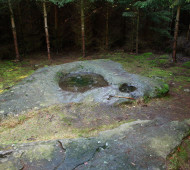 Granitblock mit einer größeren und einer kleineren Vertiefung. Auch