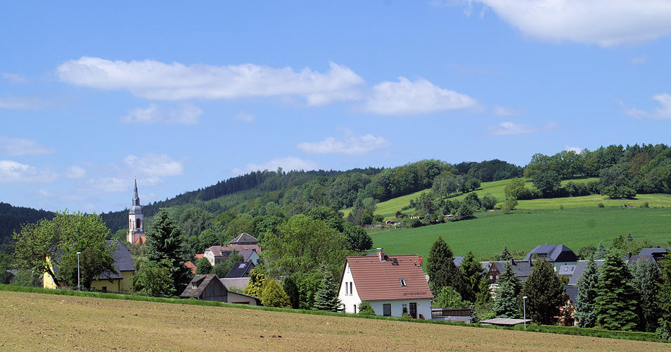 Tal nach Cunewalde mit der größten Dorfkirche Deutschland. Entlang