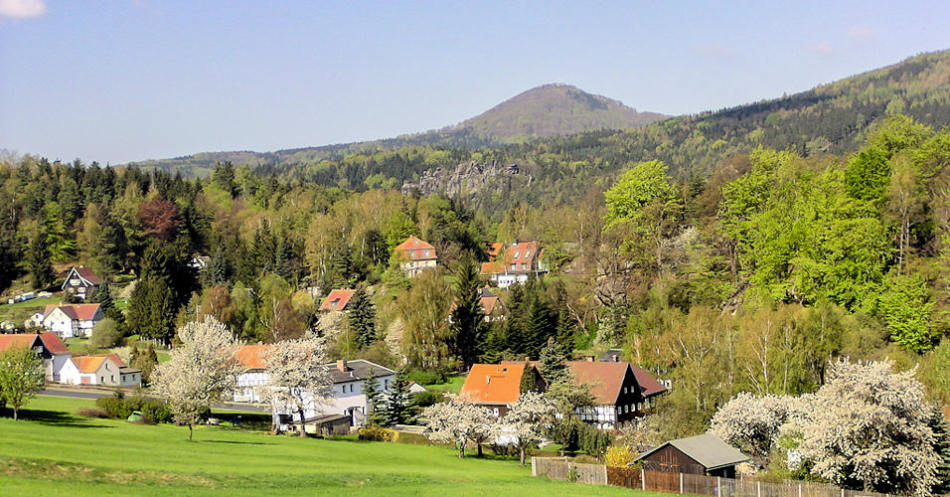 Eingeschlossen von waldbedeckten prächtigen Bergen und Felsgruppen liegt der Luftkurort Jonsdorf, mitten im Naturpark Zittauer Gebirge.