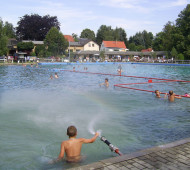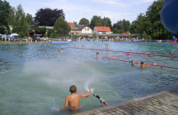Besonders ist, dass das Bad mit Frischwasser aus dem eigenen Brunnen gespeist wird. Täglich fließen 110 m² Frischwasser in das Schwimmbecken, so dass stets eine gute Wasserqualität vorhanden ist.