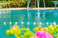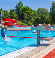 Erlebnisbad aus schallen im Sommer die fröhlichen Rufe der Kinder.